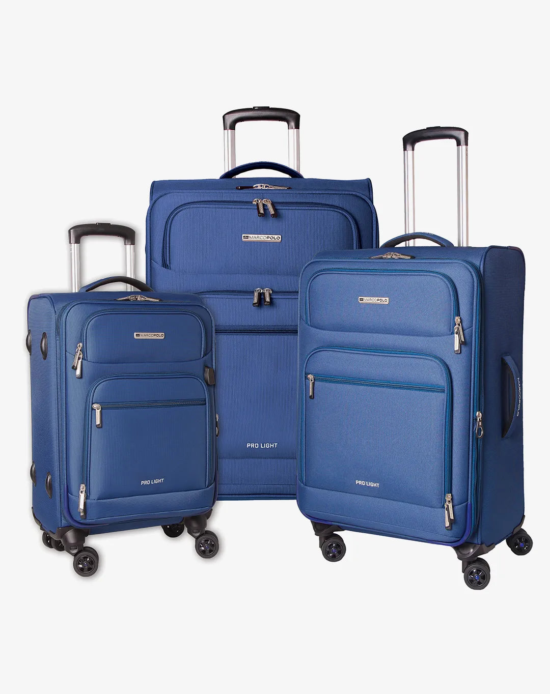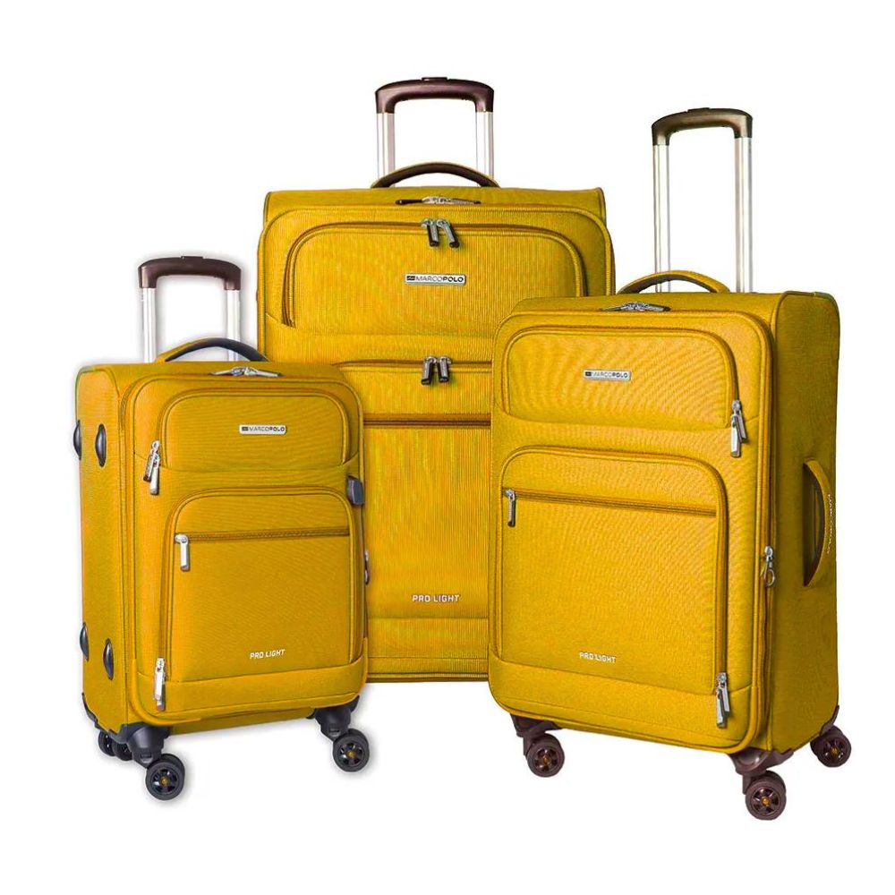 סט מזוודות בד אולטרא לייט כולל USB במזוודת הטרולי מבית Marco Polo דגם PROLIGHT