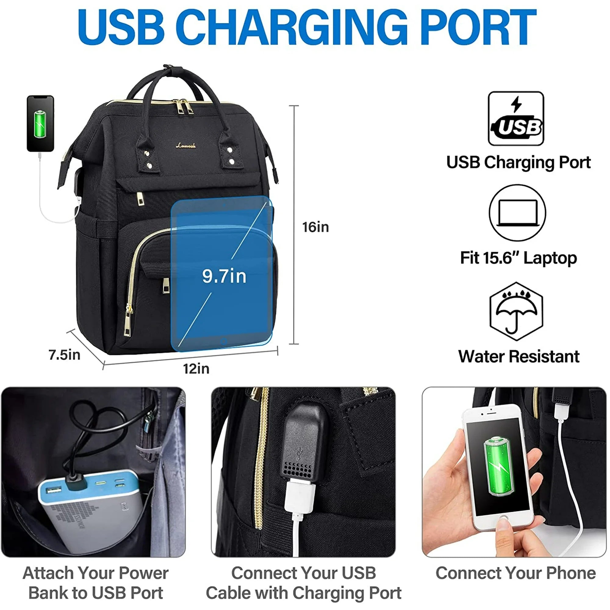 תיק גב לנשים LOVEVOOK – תא ללפטופ 15.6 אינץ', ארגון חכם ונרתיק קשיח תואם