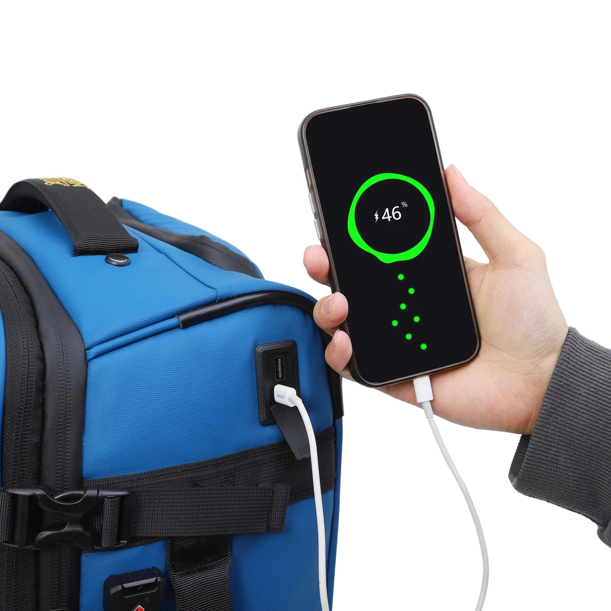 - שקעי טעינה מוגני מים (USB ו-Type-C) - במזוודת הטרולי לטעינה בזמן תנועה