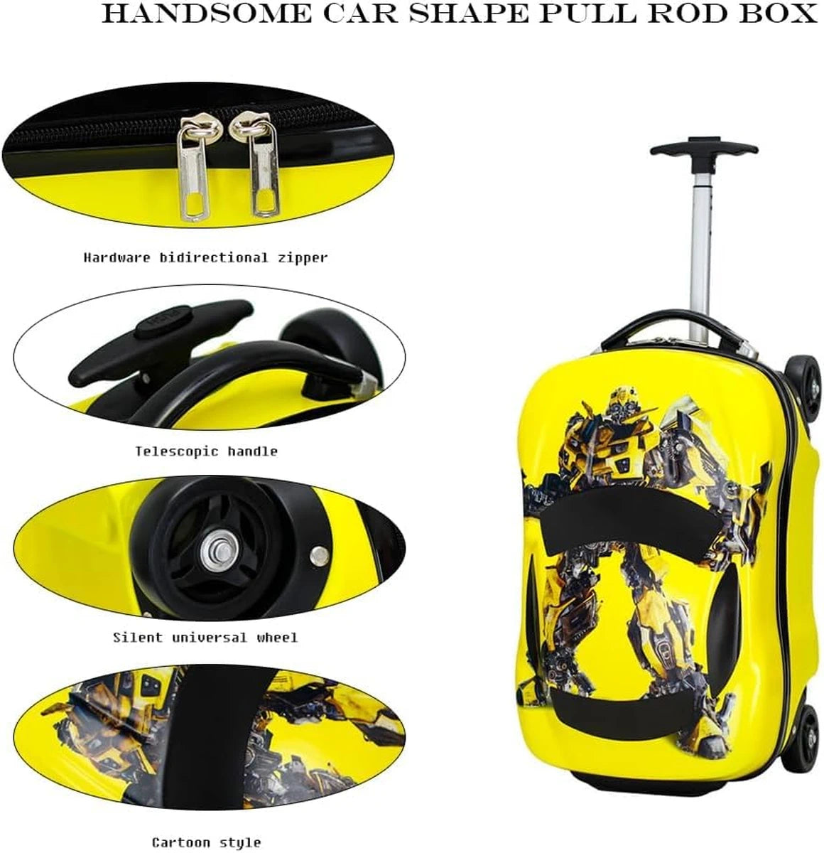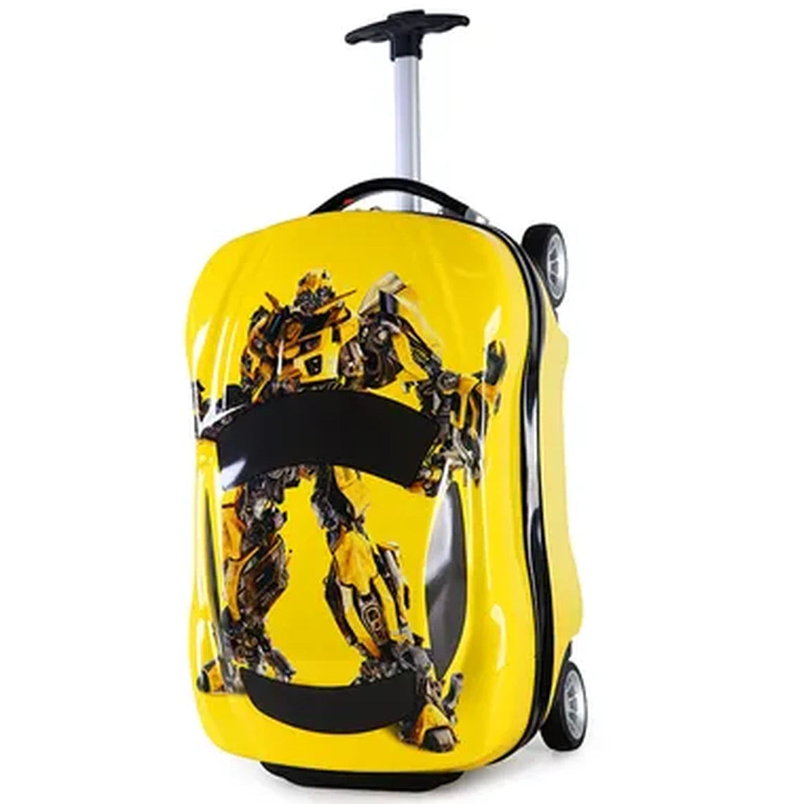 מזוודת ילדים קשיחה 18" בעיצוב מכונית ספורט עם 4 גלגלים וידית טרולי מתכווננת מבית RollyBear דגם RobotBob