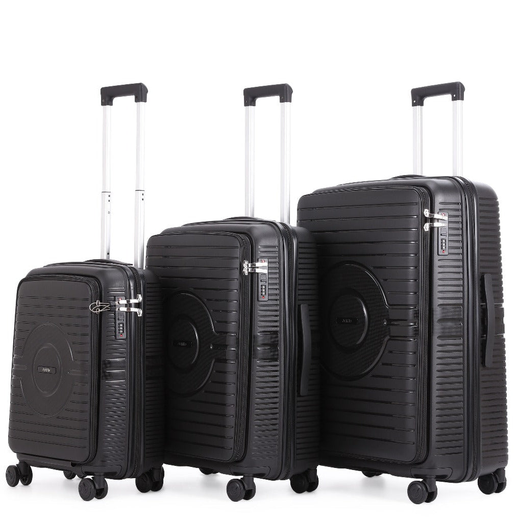 סט מזוודות קשיחות פטנט הפתיחה המשולבת 100% פוליפרופילן בלתי שביר + טרולי ללפטופ מבית SWISS דגם PakLite