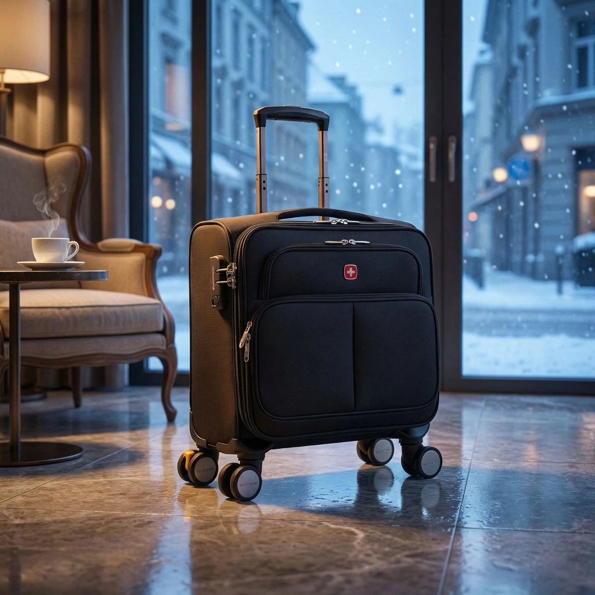 תיק טרולי יוקרתי, חכם ואלגנטי מבית SWISS, המיועד לעורכי דין, רואי חשבון ואנשי עסקים הדורשים סדר, נוחות ונוכחות מרשימה בכל יום עבודה בין אם זה במשרד בפגישות עסקים או בנסיעות לחו"ל. פרימיום אמיתי שמשלב עיצוב אירופאי מדויק עם פונקציונליות גבוהה - המשרד הנייד שלך על גלגלים.