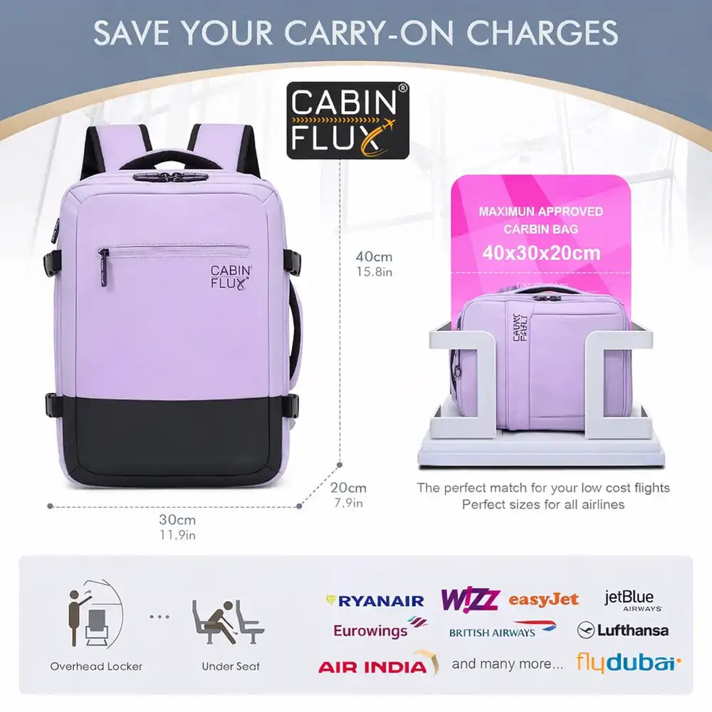 התיק עומד בדרישות מרבית חברות התעופה במידות 40x30x20 ס"מ, כולל חברות לאו קוסט וסדירות כגון: Wizz Air | Ryanair | easyJet | אל על | ישראייר | ארקיע | לופטנזה | Flydubai, ומתאים להנחה מתחת למושב ללא תשלום נוסף.