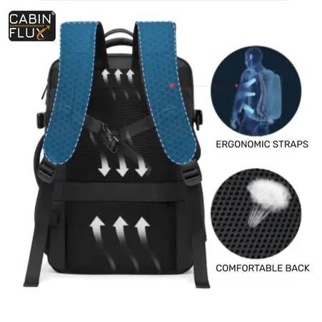 תוספות נוחות: רצועות הידוק צדיות | גב אורטופדי מאוורר | רצועות כתף ארגונומיות עם קליפס חיבור | זוג קוביות אריזה + שק לאחסון לנעליים או כביסה